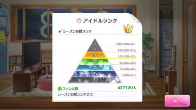 シーズン4は5万に足りない数を満たす為、「オールアイドル感謝祭」(5万人増加)か「THE LEGEND」(10万人増加)をこなす