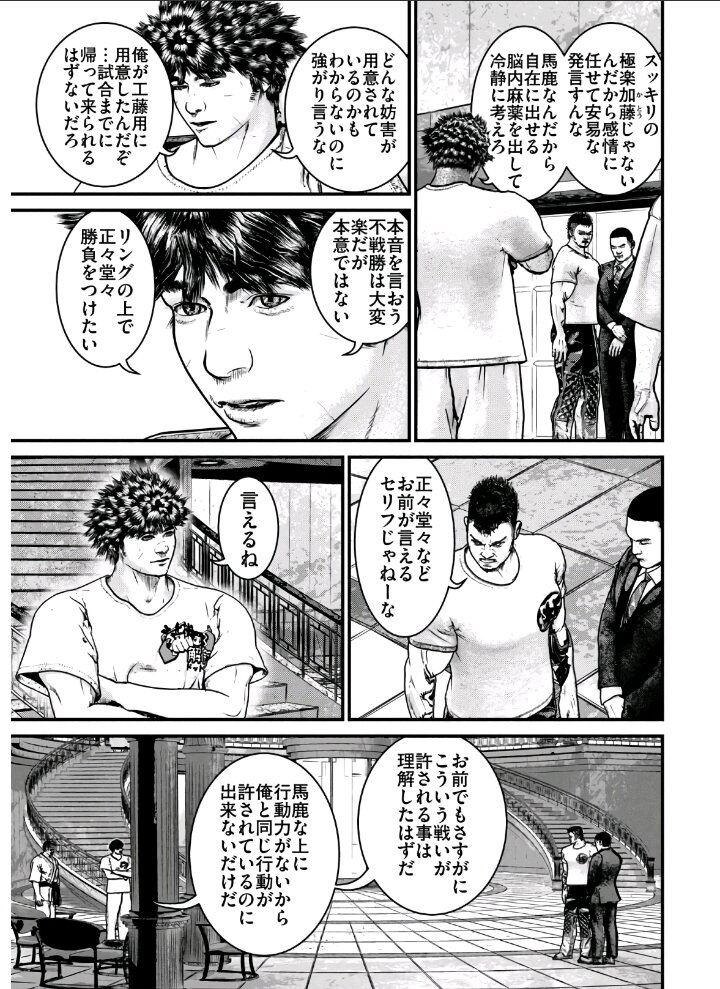 もうよく分からん裏工作とか全部無かったことにして十兵衛vs工藤と(多分やりそうな)十兵衛vs佐川兄と文さんvs田島だけ描いてくれれば良いのん