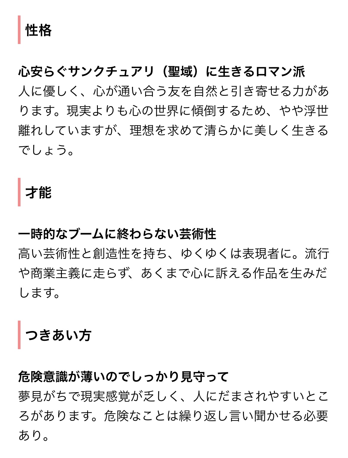 星座合わせで他のキャラと被らないようにした感じじゃない?魚座はアーティスティックな不思議ちゃんの星ってイメージある