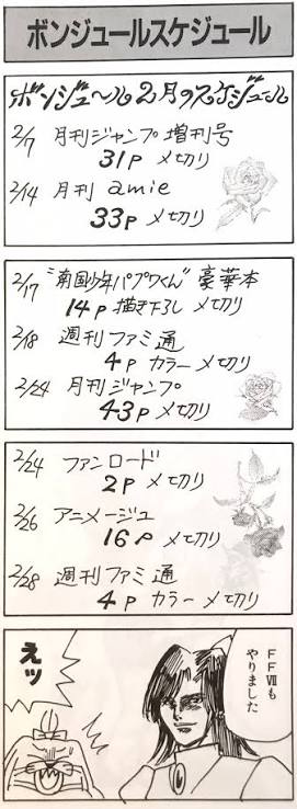 なお現在の連載は月刊誌2つと隔月誌1つ。ヘタな週刊作家よりも描く量は多いまま