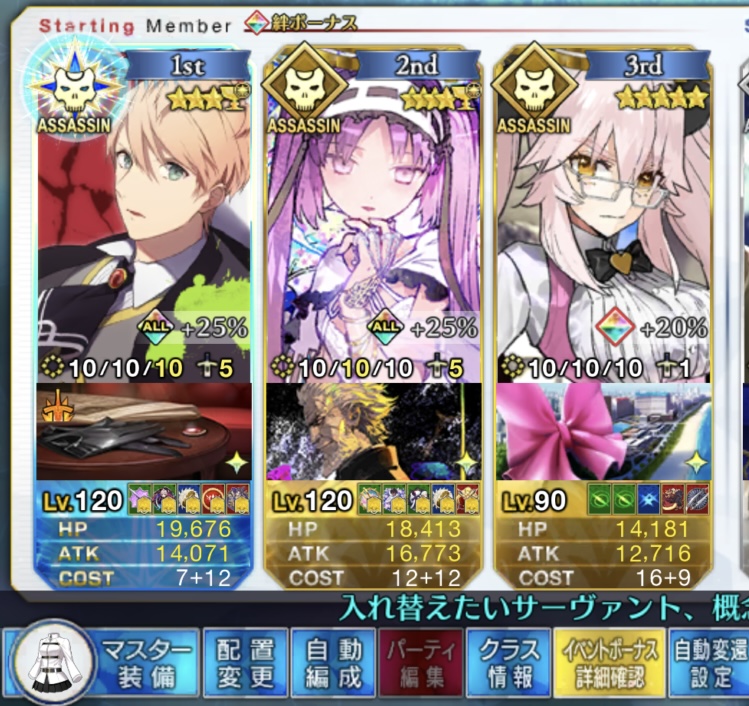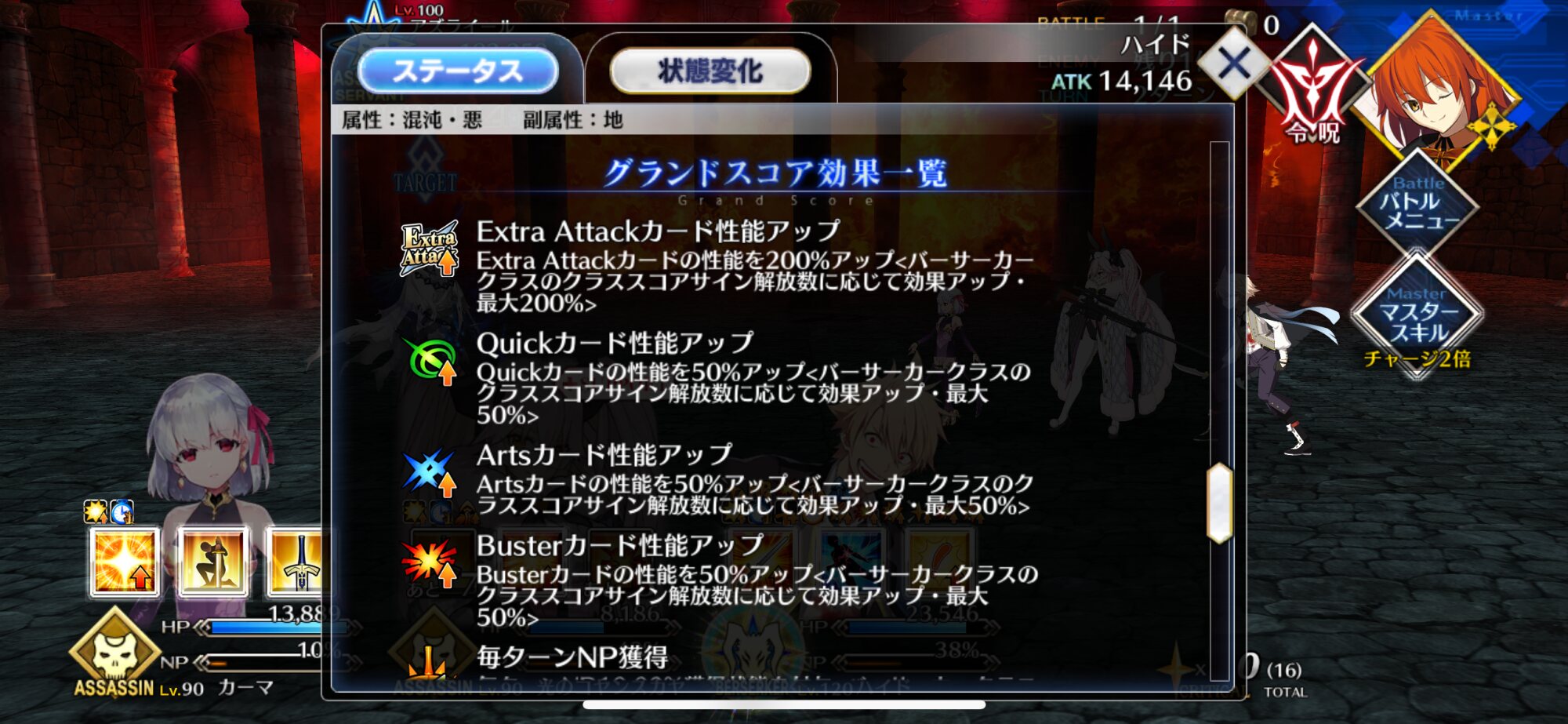 そっか、両方のグランドスコアを開けたらコマンド選択後の即死は回避付ければアサシンのグランドスコア効果で無効化できて宝具使用後はバーサーカーのグランドスコア効果でガッツが付けられるようになるから意外と場持ち良いのか