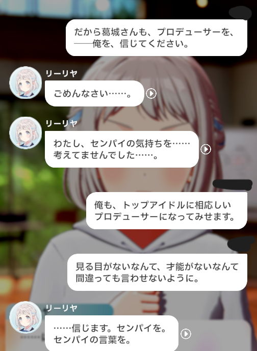 彼もまた月村手毬の同類であり、自らがプロデューサーとしての信頼を勝ち取った自覚はあれど人間としてここまで好かれているとは恐らく思っていなかったのではなかろうか