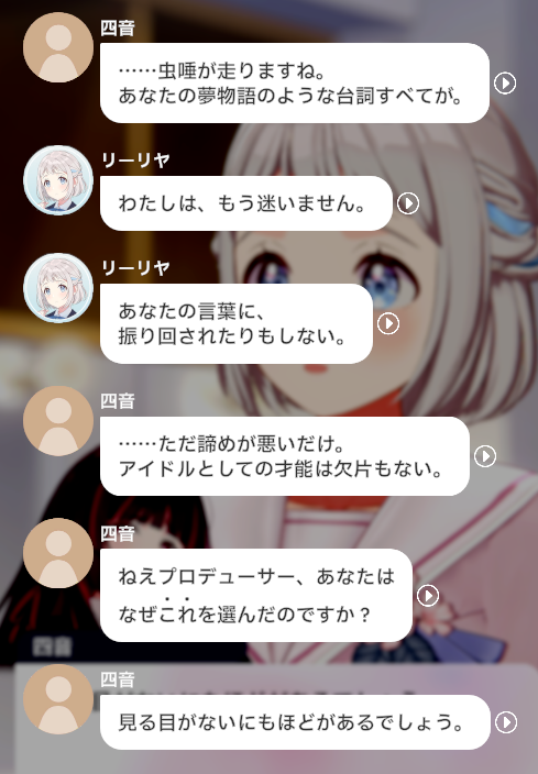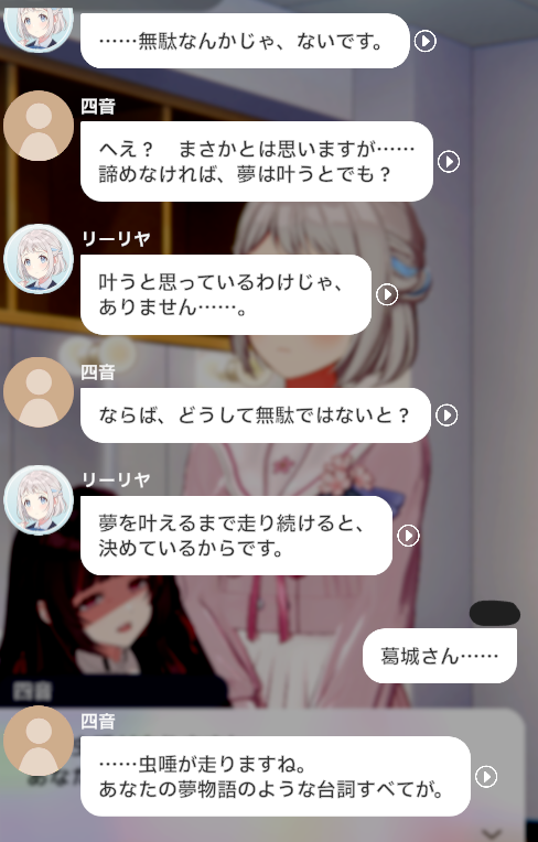 割とマジでそう。あと、四音はリーリヤ含む何名かのシナリオで「優れたカタログスペックをメンタリティが台無しにしている」ことが示唆されているので……詳しくはリーリヤ編フィナーレを突破して確かみてみろ!
