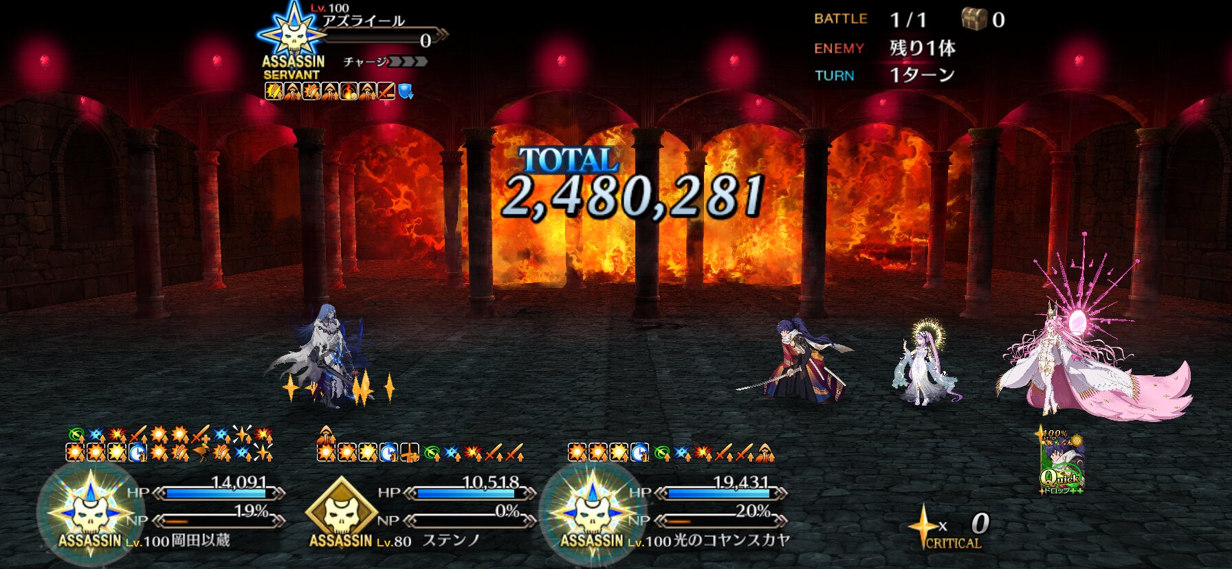 それからアペ5効果で単コヤンだとA20+星15+星集中のS3が、Wコヤンだと人型特攻100%のS1も重ねがけ出来るのも偉い!