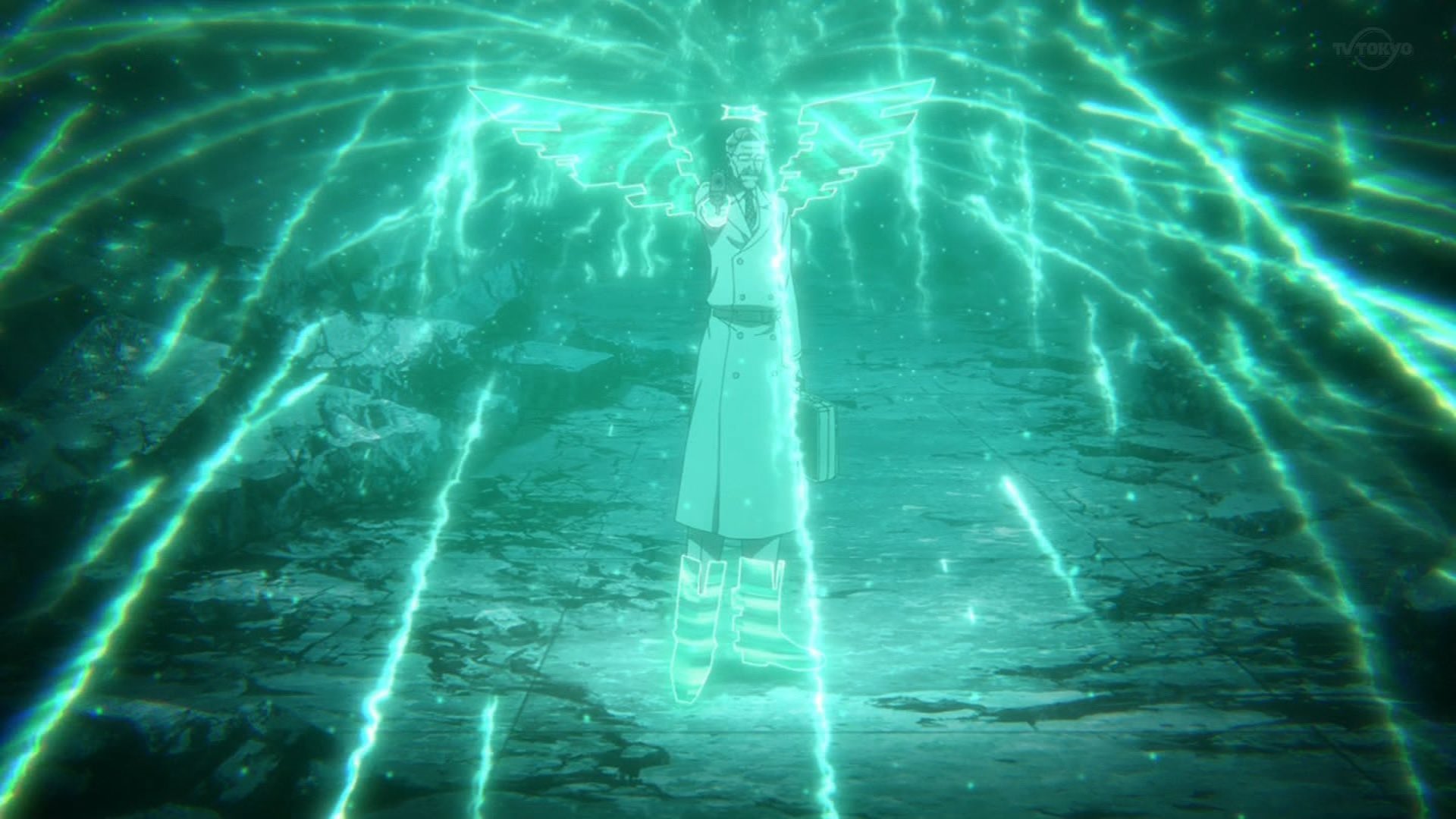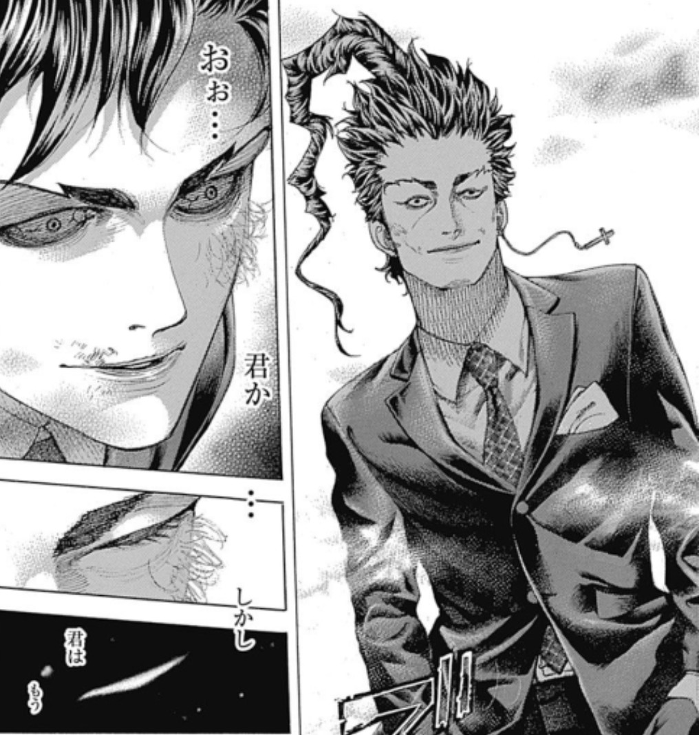 滝澤政道(オウル)は、自分の両腕をじっと見つめ、何かを押し殺すように深く息を吐いている。その視線の奥には、狂気と自責の念が交錯しているようだ。