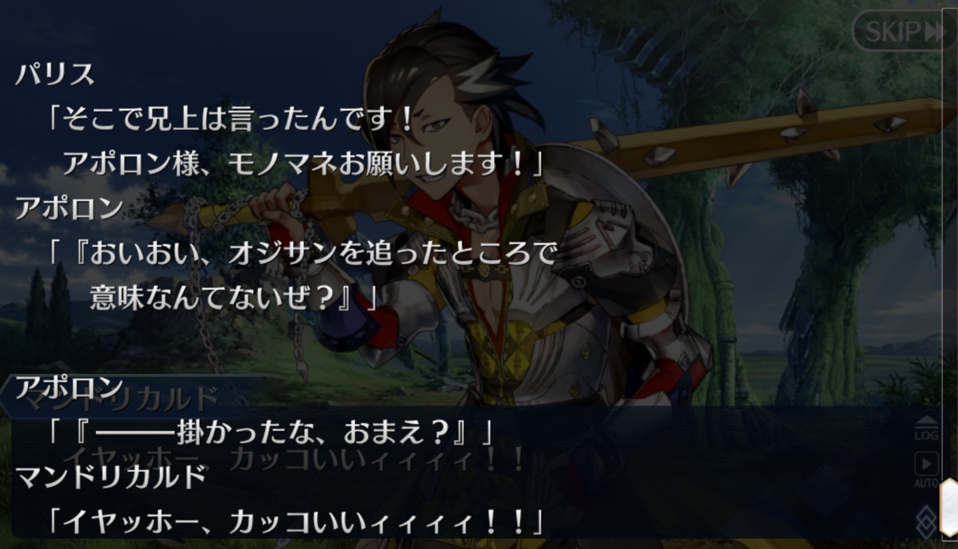 マスターのマイフレンドなんだ!とは言いたいけど普通に生前の素のマンドリカルドもマンドリカルドではあるからローランには陰キャ的口調なしで話してるのなんか悔しい...けどこれもこれでいい