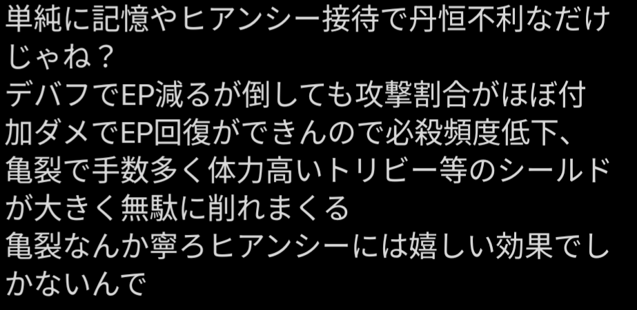 じゃあ今騒いでる人って記憶が落ちて丹恒入るパーティが異相接待もらったらバランス調整おかしいって言うの?言わずに今のヒアンシーのように丹恒入りパ叩くのが大半じゃないの?