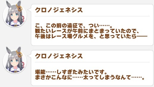 「クロノジェネシス、集中したら定食食べても気づかない説」