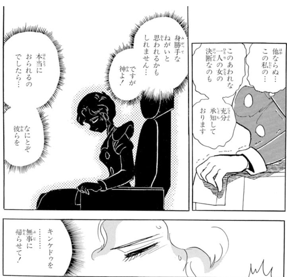 『サイボーグ009』の地下帝国ヨミ編のラストの方の「最後の一秒までチャンスにしがみついてみせる。その一秒が過ぎたら…神よ、お力添えを!生まれて初めて…あなたに祈ります」のシーン