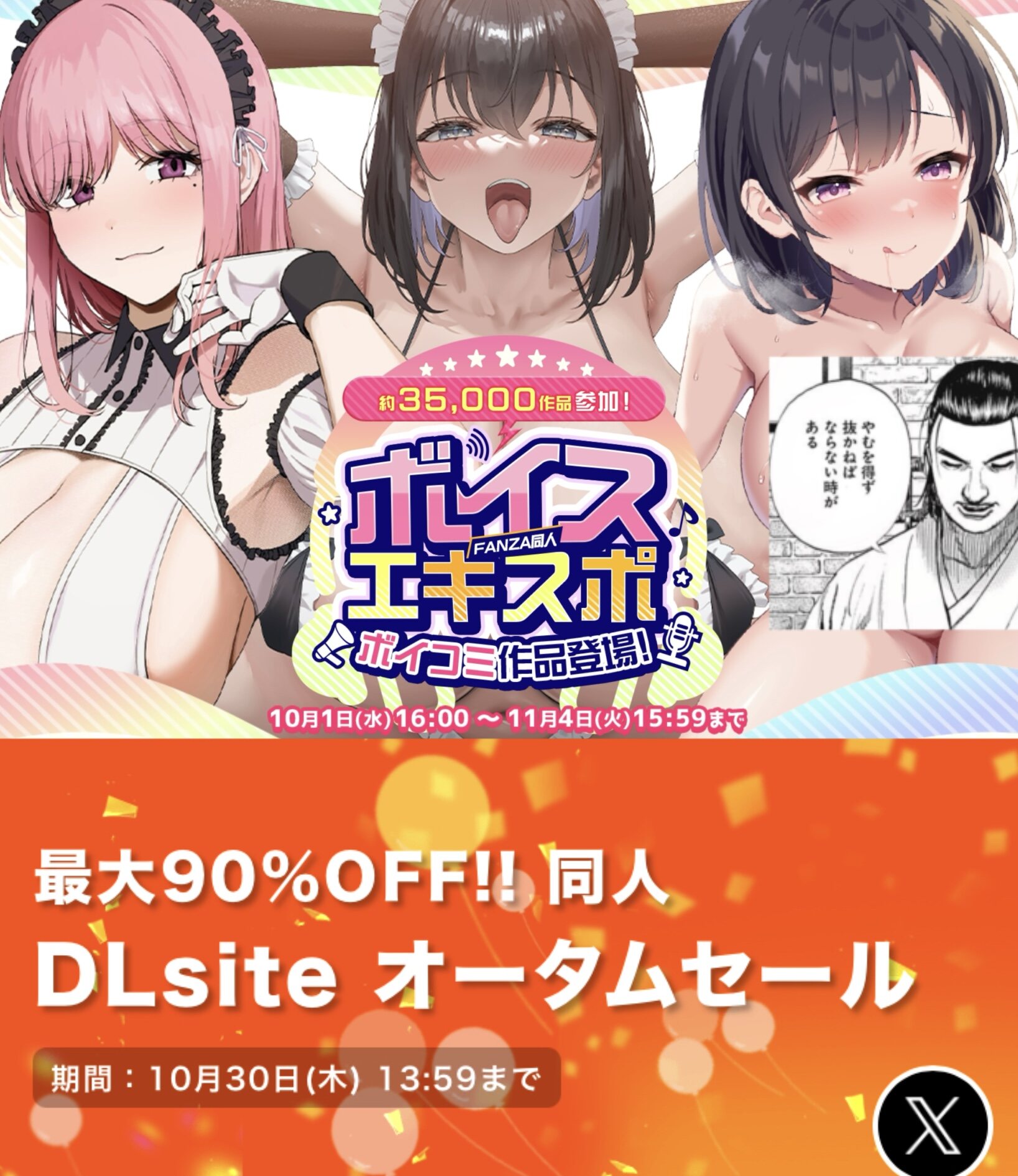 FANZA同人ボイスエキスポFANZAå人ãã¤ã¹ã¨ãã¹ãï½FANZAå人é³å£°ä½åãã¡ã³è³å¯ãæ å ±ï¼ãFANZAå人ãã¤ã¹ã¨ãã¹ããåéå¬ï¼10åï¼100åã»ã¼ã«ãã1,500å以ä¸è³¼å ¥ã§å½ãã豪è¯ã°ããºãï¼2/28ï¼éï¼ï½3/31ï¼æï¼ã¯FANZAå人ã§ä½ãããããããã¤ã¹ã¨ãã¹ãâªwww.dmm.co.jpDLsite オータムセール: 同人誌・同人ゲーム・同人ボイス・ASMRのダウンロードなら「DLsite 同人 - R18」最大90%OFF!DLsite オータムセール開催中! ~10/30 13:59www.dlsite.com