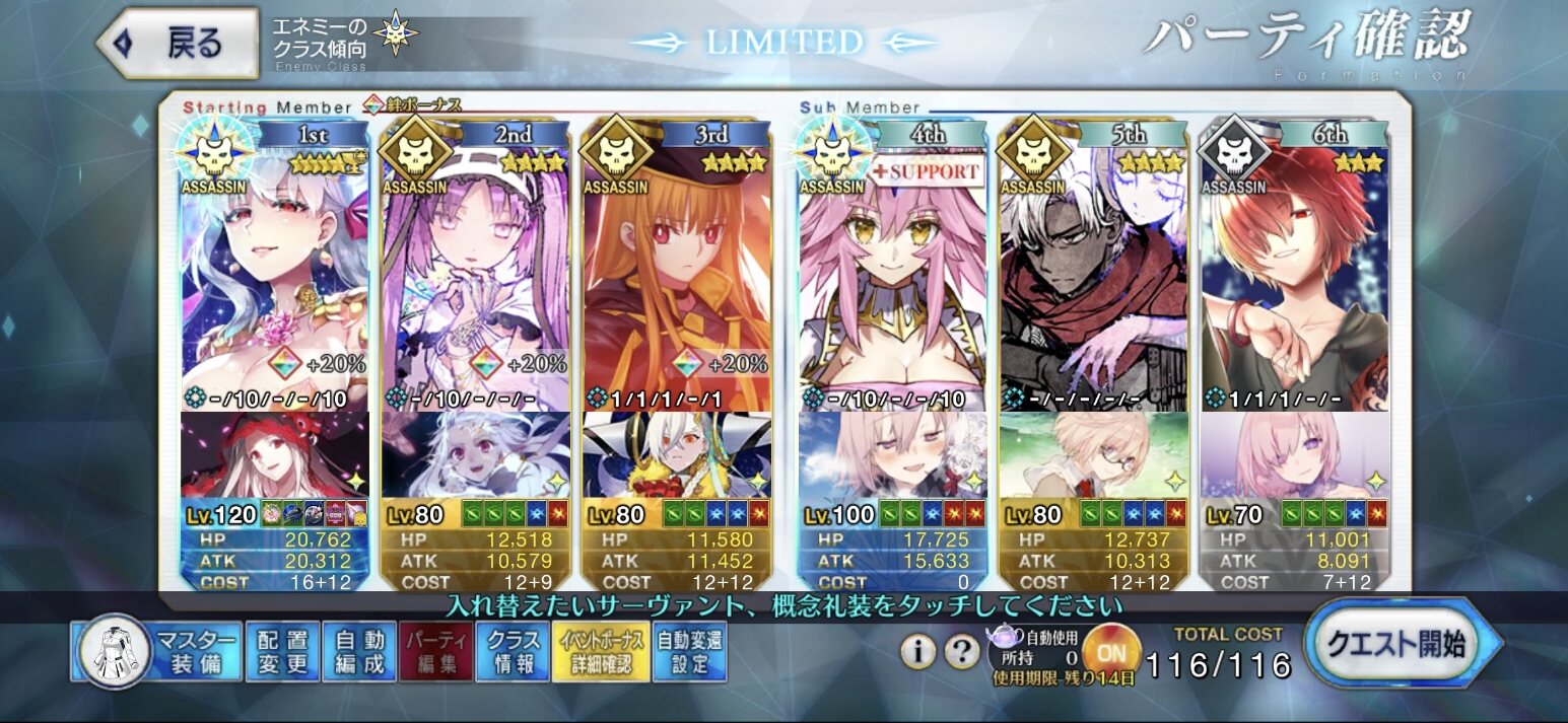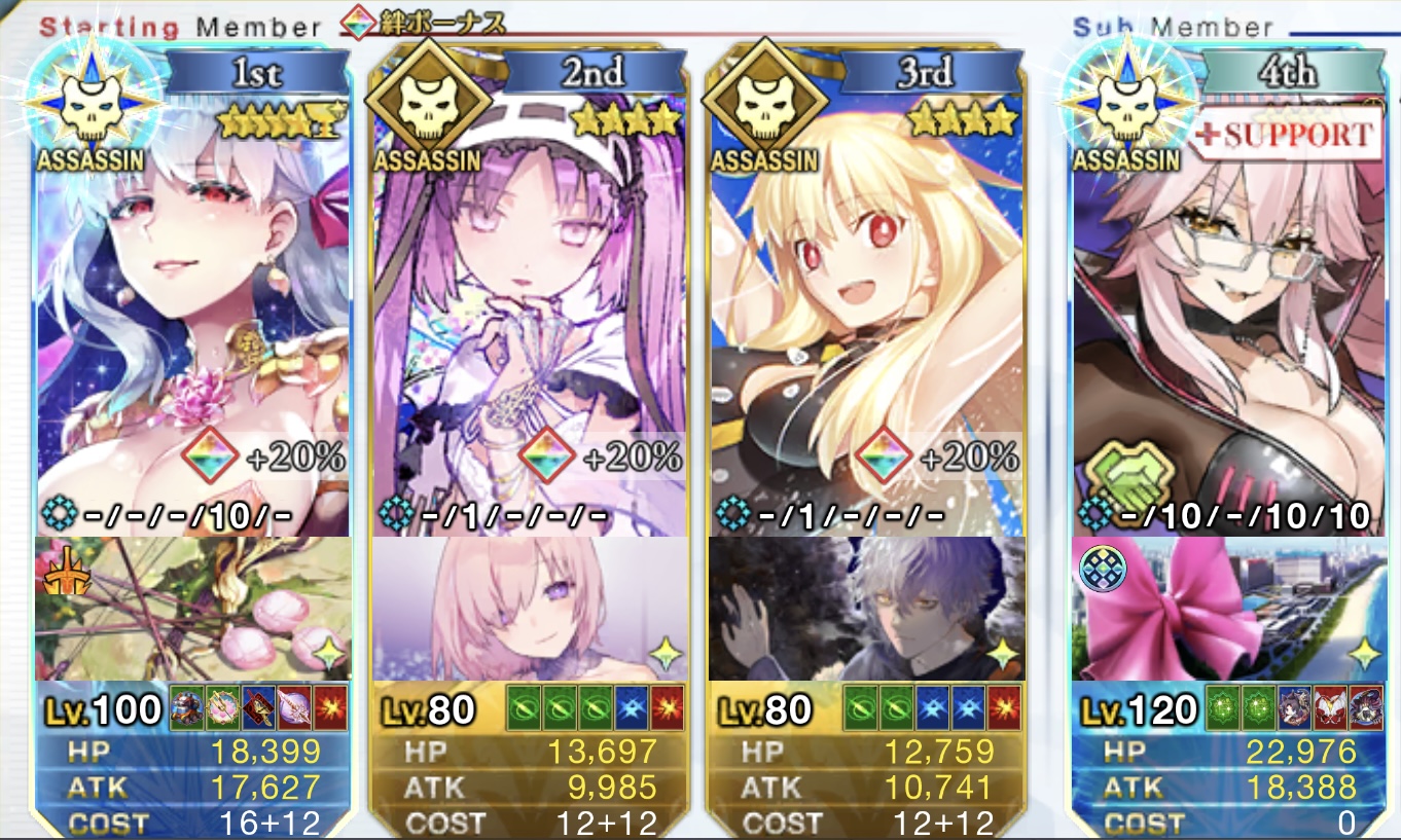 フレが来ない時は別で見た編成を使いステンノ様を自前に刑部姫を光コヤンに変更し礼装NPコヤンNPをステンノ様に残りスキルをカーマちゃんにしています