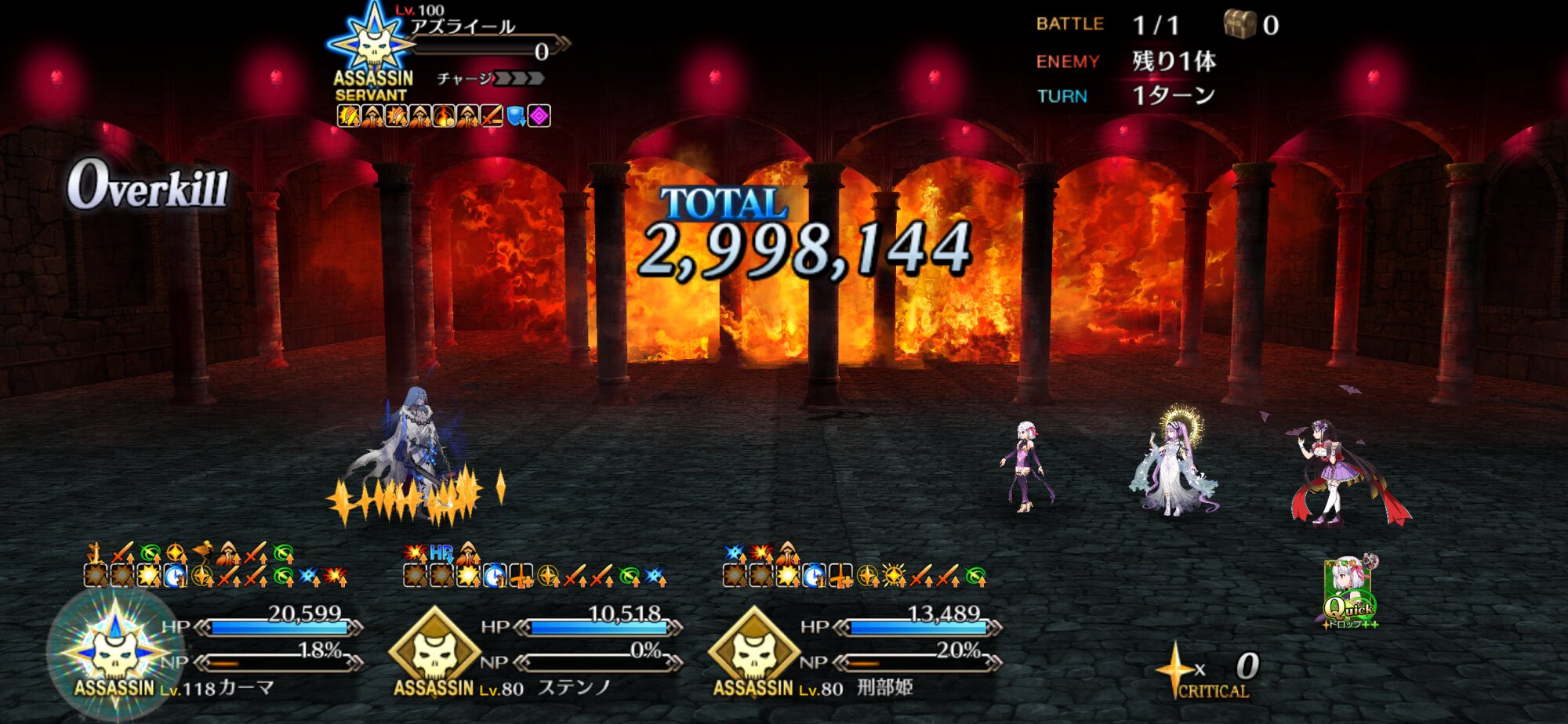 ステンノ様宝具→カーマちゃん宝具で魅了入らなくても1w確定です