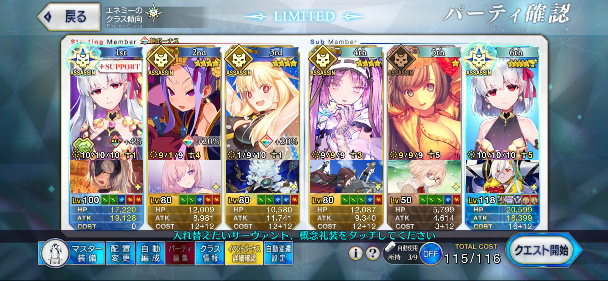 宝具レベル4のレベル120カーマをステンノコヤンとマスター礼装はウィンターで使って安定してる。