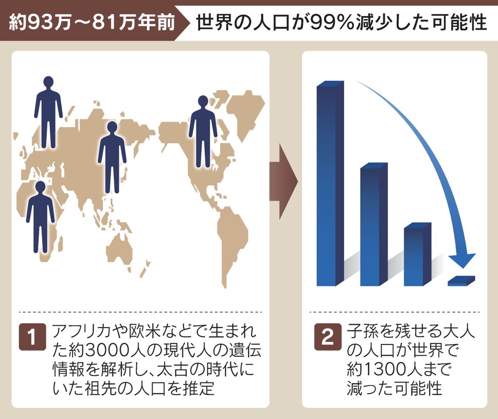 ウィキペディア情報だが「火山の噴火などによる寒冷化で人口が急速に減少し、気候の回復や火の利用ができるようになったことで人口が増大した」という説をあげている