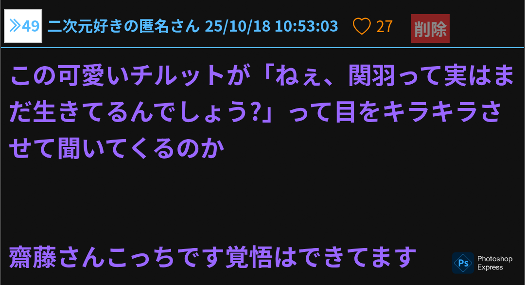 - 49二次元好きの匿名さん25/10/18(土) 10:53:03