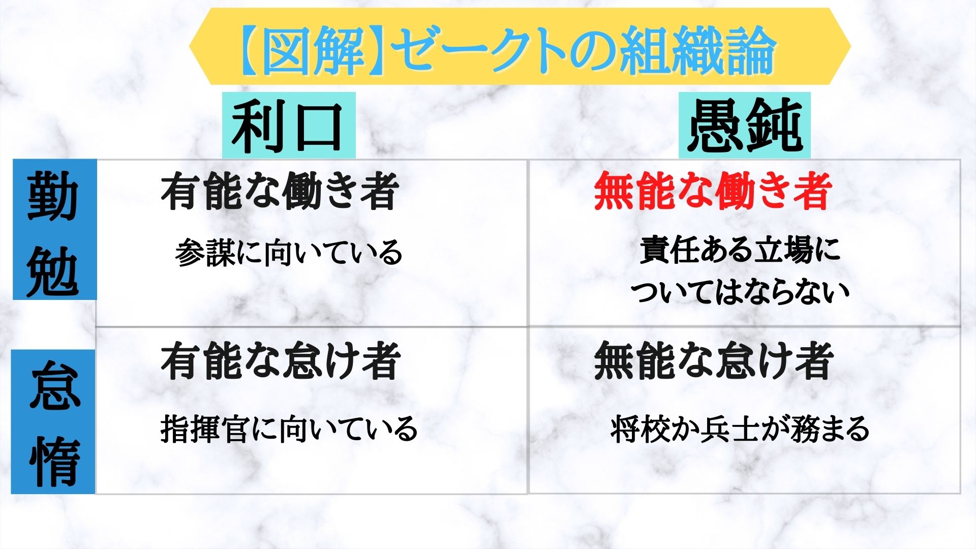 確か元々はウチの上司は厄介で間抜けな無能な働き者だけど、部下の無能な怠け者の方が厄介に決まってるだろボケっていうジョークだからね