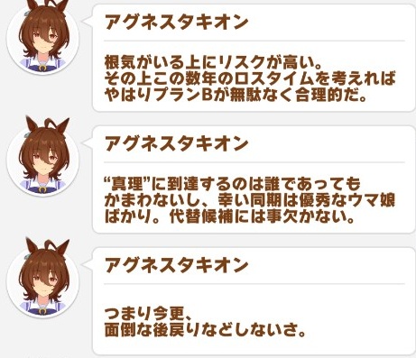 プスカ君あたりが実装されたら復帰せずプランBやってるタキオンがいるのかもしれない