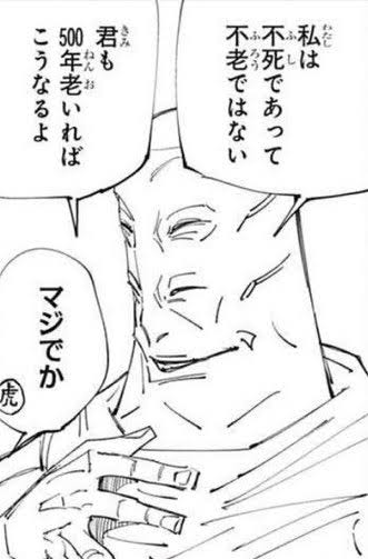 不老化とかは夢見過ぎだと思うが、羂索の仕込みやら込みで普通に長命くらいはあり得るライン - 70二次元好きの匿名さん25/10/20(月) 11:46:35