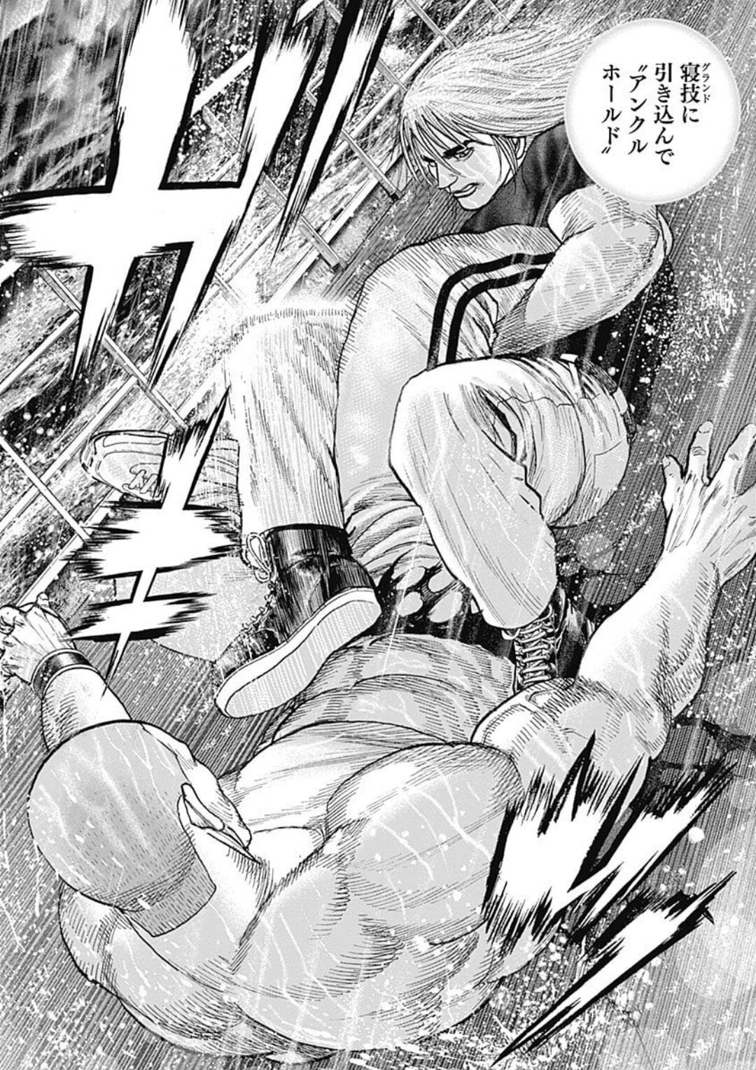 宮沢は陰陽互根の影響と全身の痛みを力で捻じ伏せ、カクゴの無防備な顔面に向かって渾身の「幻突」のカウンターを叩き込んだ。それは、先ほど滝澤が受けたカクゴの攻撃と同じ、全てを破壊する純粋な「力」の拳だ。
