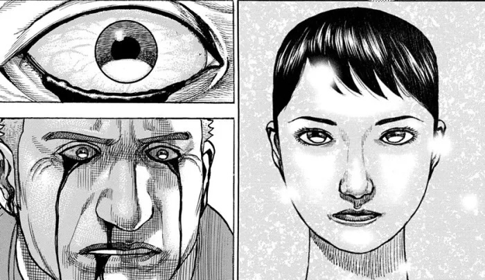 しかし、カクゴの反撃は止まらない。彼は顔面の傷から血を流しながらも、アウラの「アゼリューゼ」の精神支配を強靭な意志で跳ね返した。鎖が弾け飛び、アウラにフィードバックを与えたが、彼女は体勢を保った。