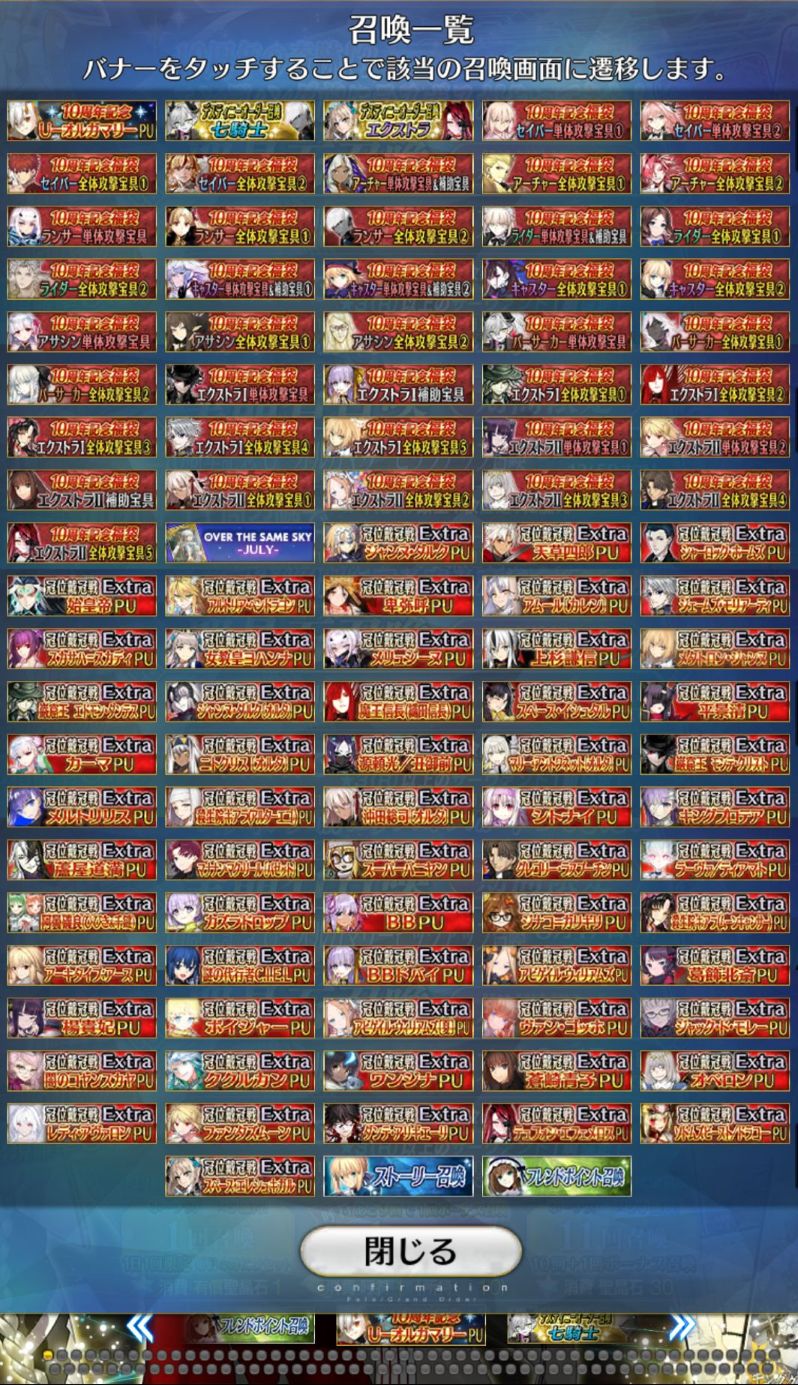 ランサーは欲しいやつだいたい持ってるがエクストラが欲しいやつ多すぎる……でも石は終章で実装されるであろう誰かのために取っておきたいし……