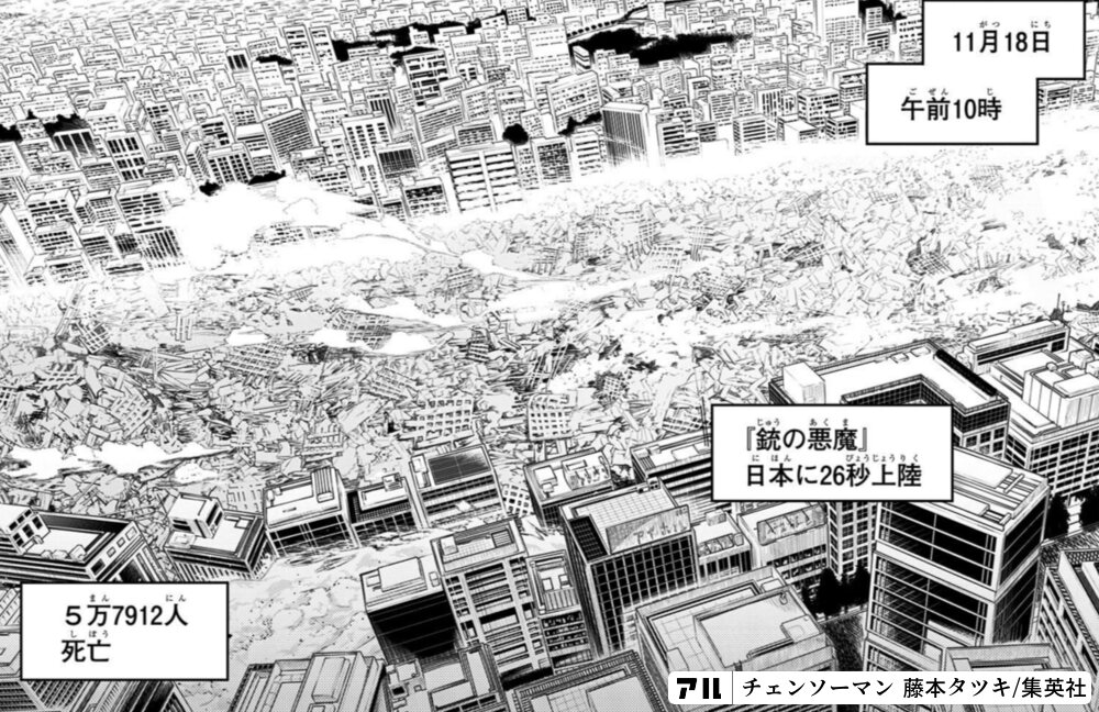 チェンソーマンは国外逃げても仲の良い友達や家族が偽物チェンソーマン化したり落下の重力異常で噴火と地震起きまくって人死ぬし