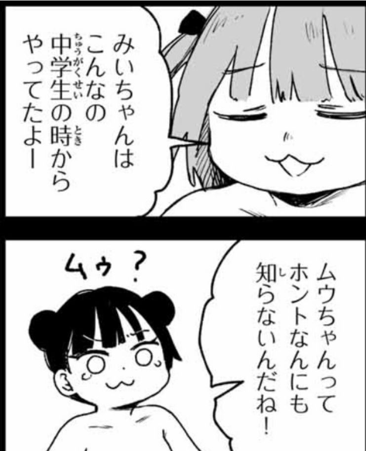 かつてはポニテが万引きさせたとか言われてたのにこっちは外れでみいちゃんがむうちゃんに吹き込んでたの草