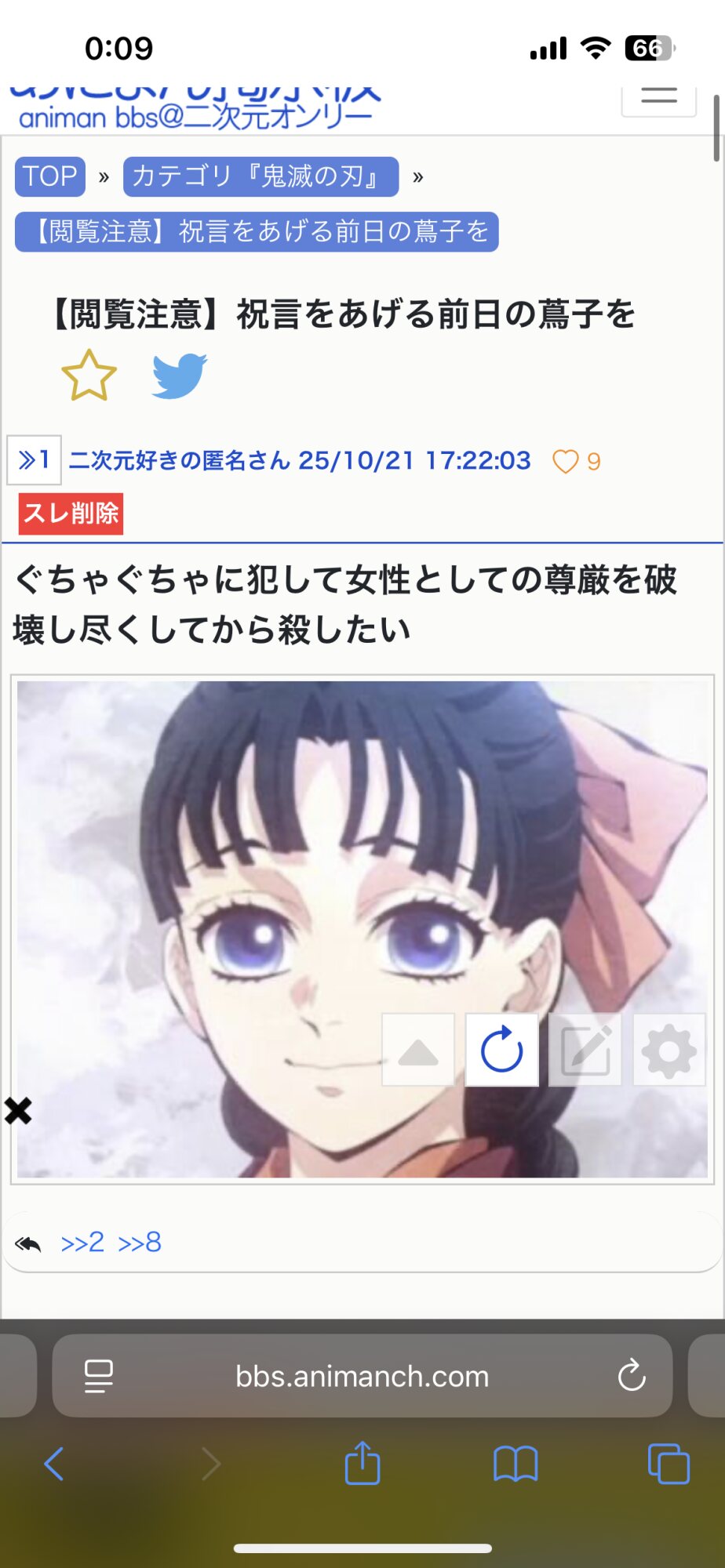 蔦子を殺して義勇の小指を引きちぎった後偶然居合わせた鬼殺隊に首を斬られる程度でいい - 38二次元好きの匿名さん25/10/22(水) 21:09:10