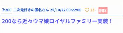 最近、ウマ娘ロイヤルホープは山王オーナー因子多めなのが前提っぽく話されてるけど、まさか本人にそう伝えるわけ無いだろうし… - 172二次元好きの匿名さん25/10/28(火) 13:29:23
