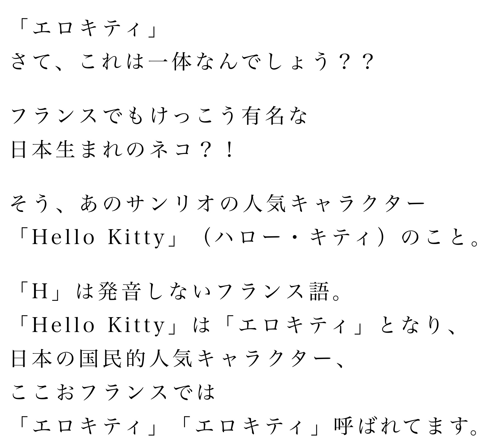ハローキティのhが発音されない事がままあるのを考えると