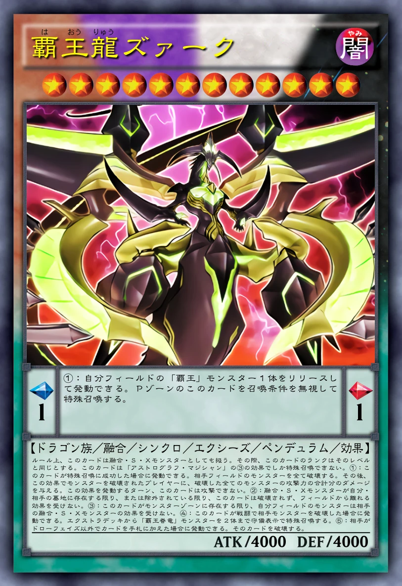 あ、そっかズァークとアーク・クライシスが融合ペンデュラムになってるだけで、召喚条件が融合・シンクロ・エクシーズ・ペンデュラムそれぞれ1体づつ合計4体に関連さえすれば、シンクロペンデュラムやエクシーズペンデュラムでもいけるのか。