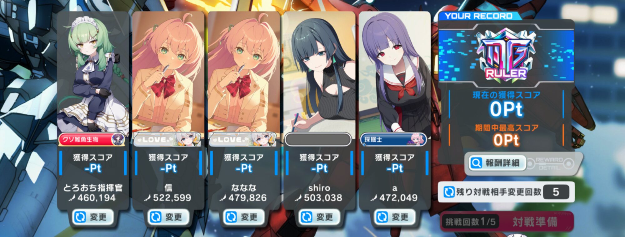 もしかして勝った相手ガチャガチャしてスコア上げておくべきだったタイプ?