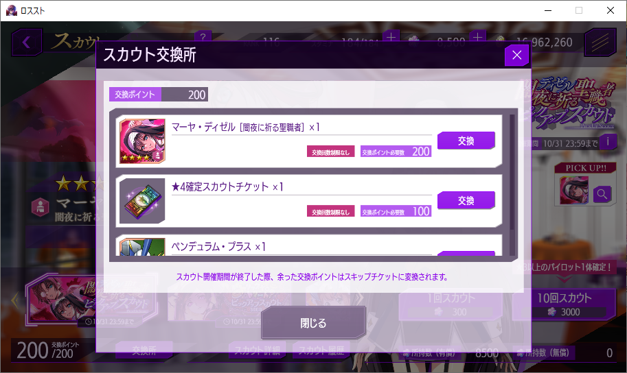 あまったスカウトポイントのスキップチケットへの変換終わるのな