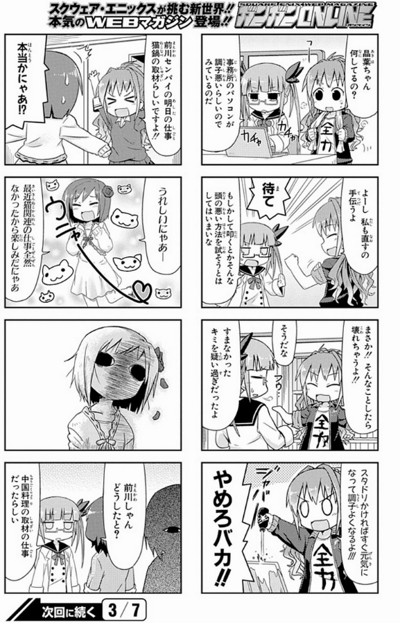 残念ながら越智先生の病気悪化による視力低下からこのコミカライズは打ち切りとなり、同時に商業漫画家も引退した。現在は同人マンガをコミケで出品してる事が多い。多くのコミケ後、「コミケで越智先生(のブース)を見たよ」「越智先生の同人マンガ買った」という人の声が聞かれた。