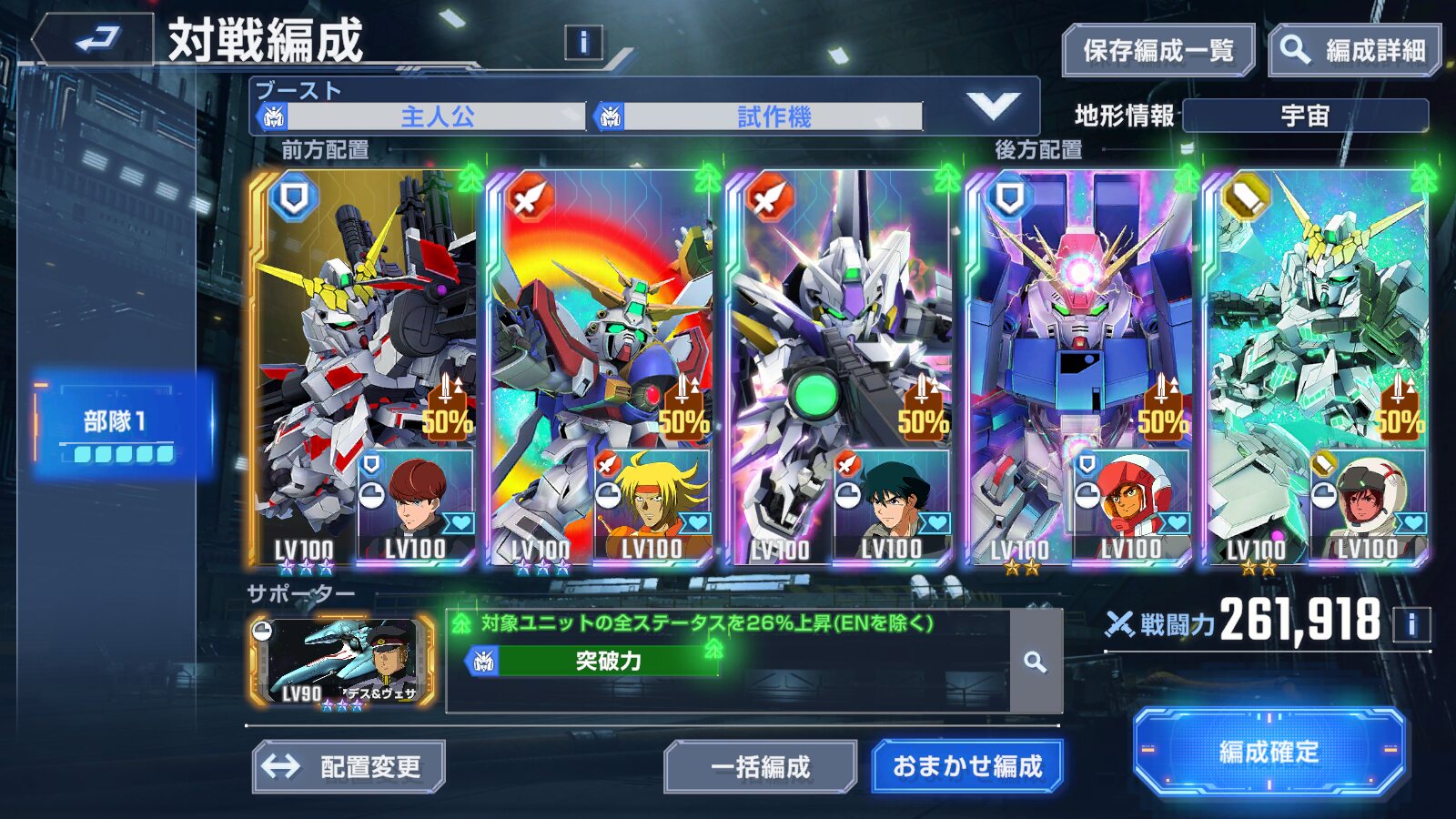 今回バフ貰えるのが主人公と試作機タグ持ちなんでそのユニットを使うようにしてる