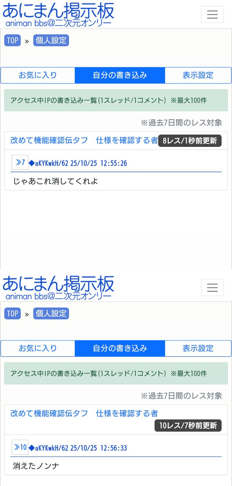 荒らし対策の報告って本当に機能してるんかのぉ… - 10◆aKYKwkH/6225/10/25(土) 12:56:33