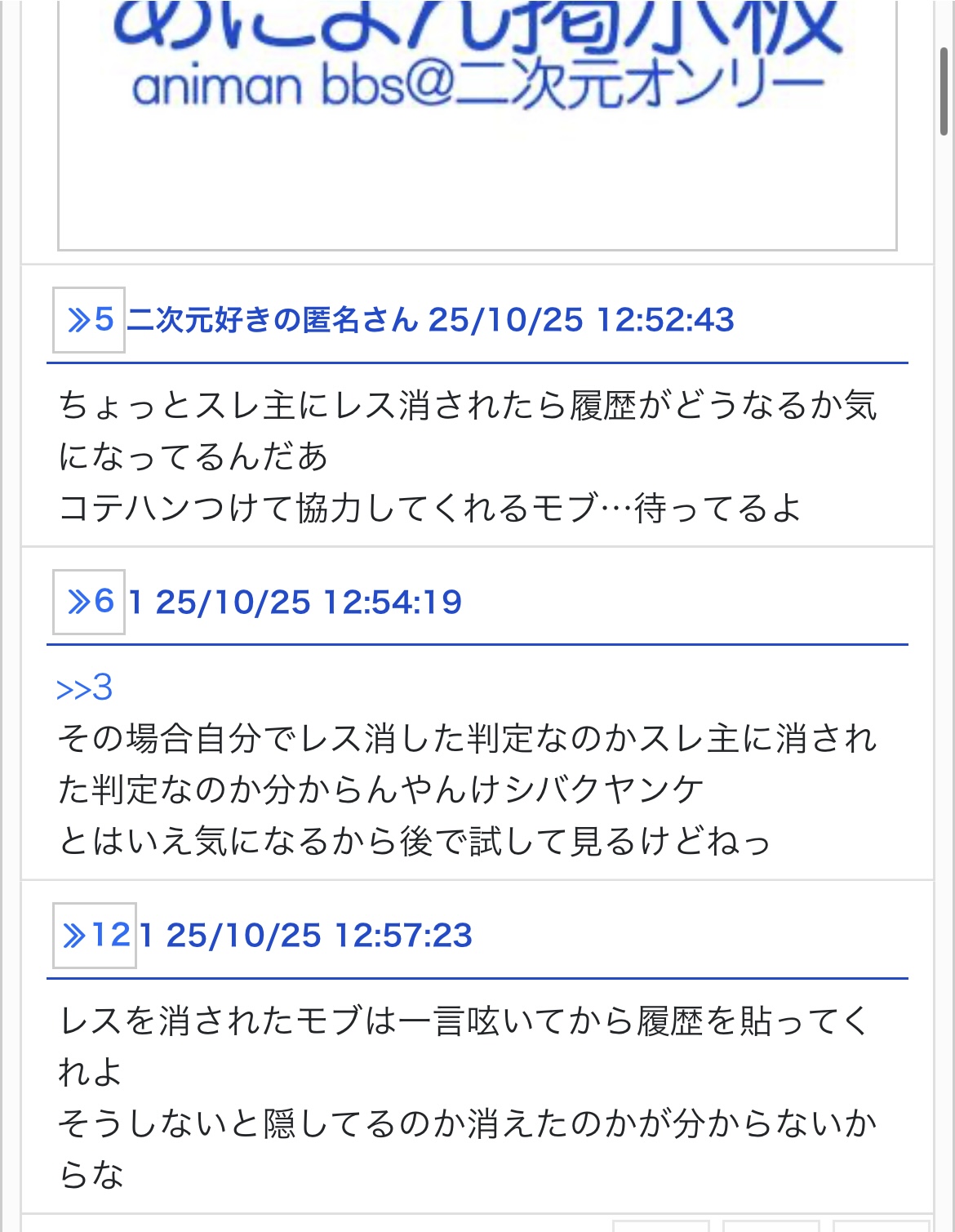 レスを消されたモブは一言呟いてから履歴を貼ってくれよ