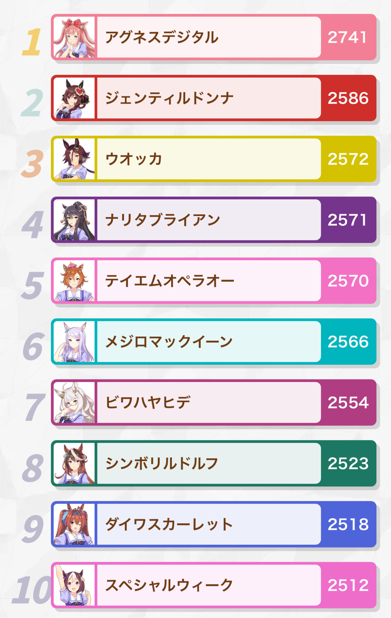 王道路線で先行差しで勝ったG1が多いやつは基本的に順位上だからアイちゃんも多分上の方になるな