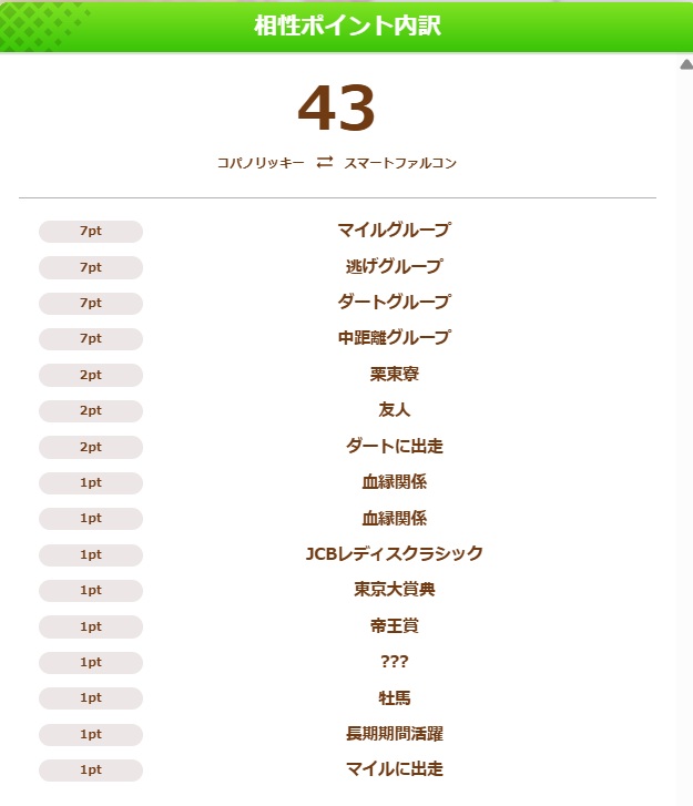 先行マイル中距離属性なのと史実で勝ったG1が同じだったらポイント加算されるみたいだからその分じゃね