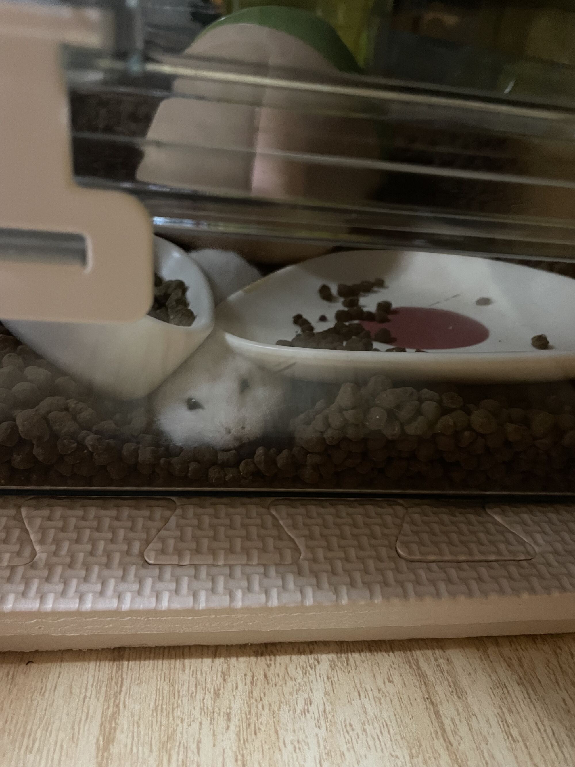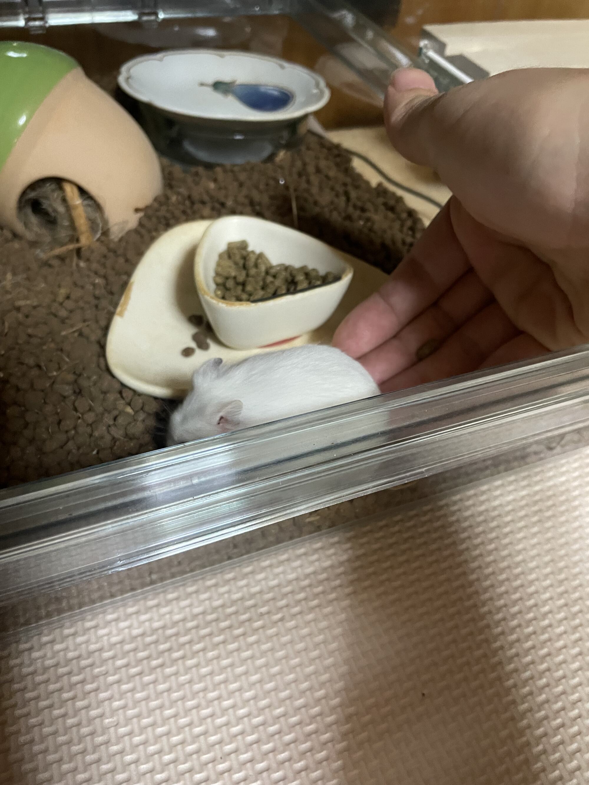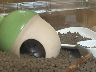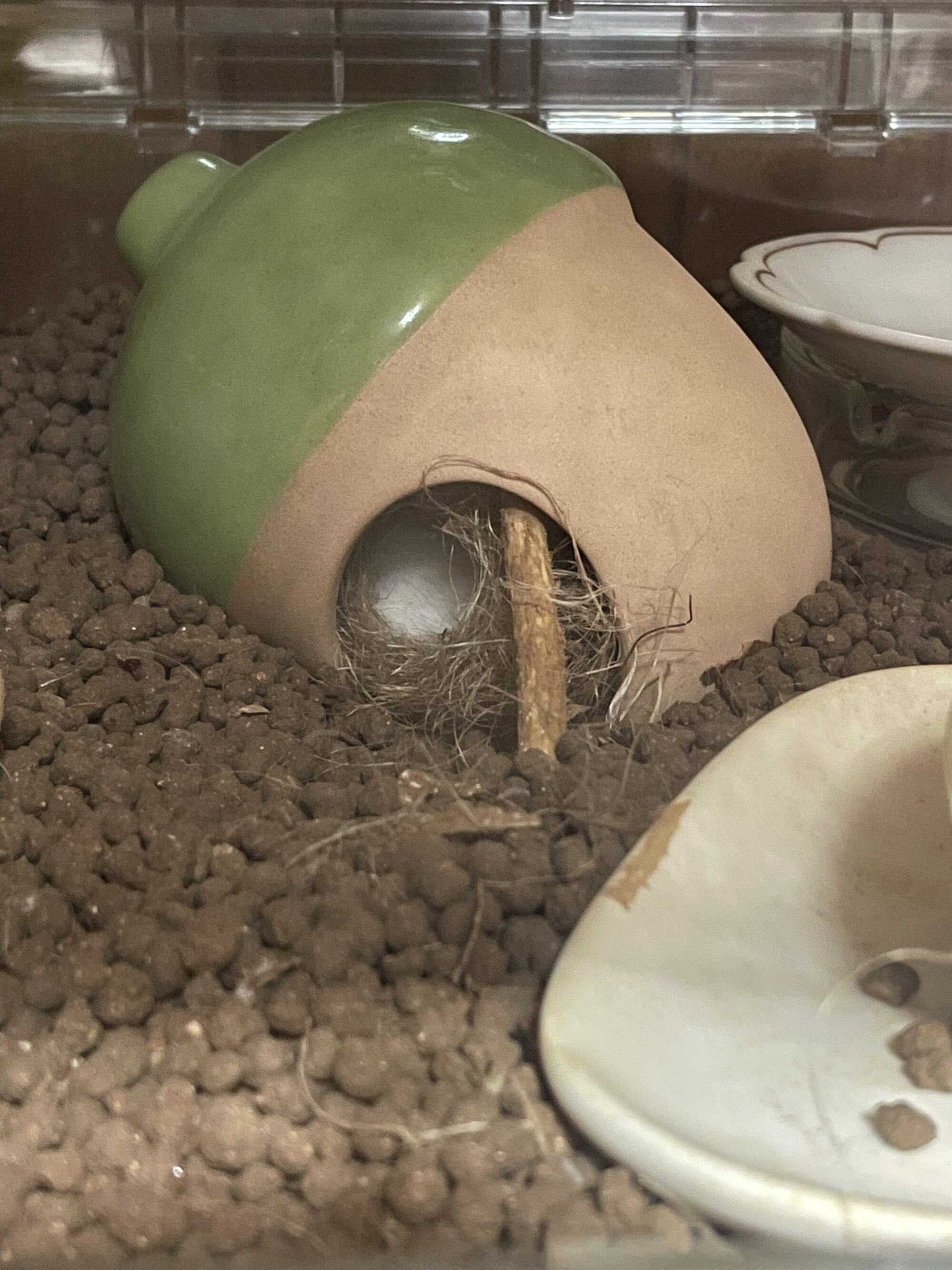 見た感じケージ内に隠れる場所少ないから何か増やしてあげるといいかも