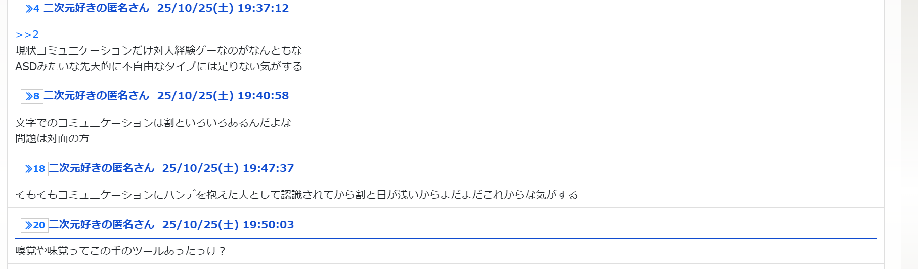 他人の話を聞くって自分とは元々関係ない話を聞くってことなので - 27二次元好きの匿名さん25/10/25(土) 19:55:03