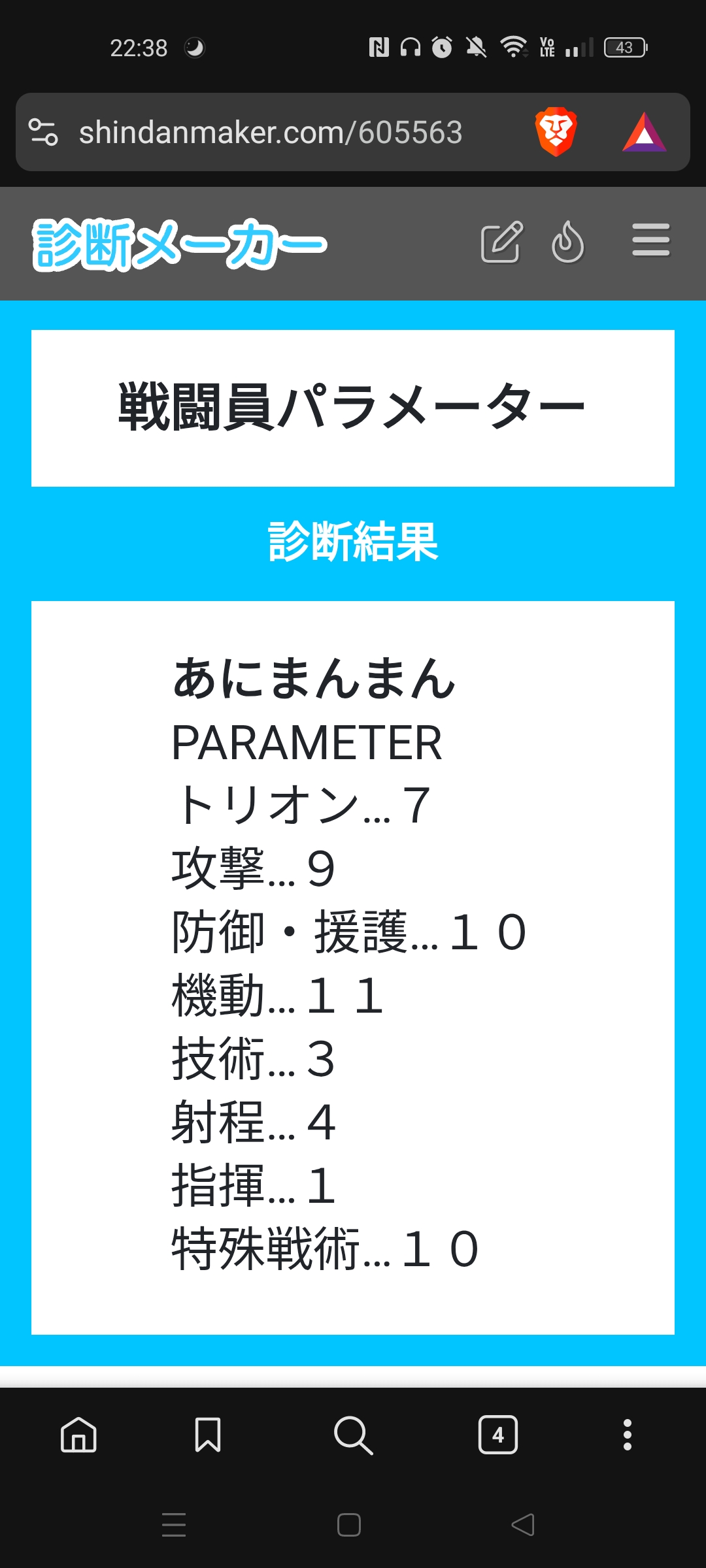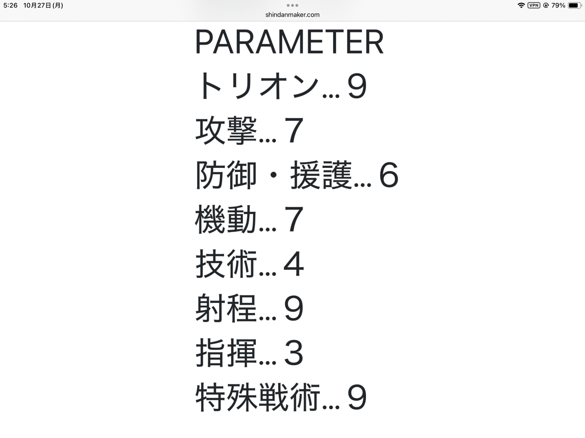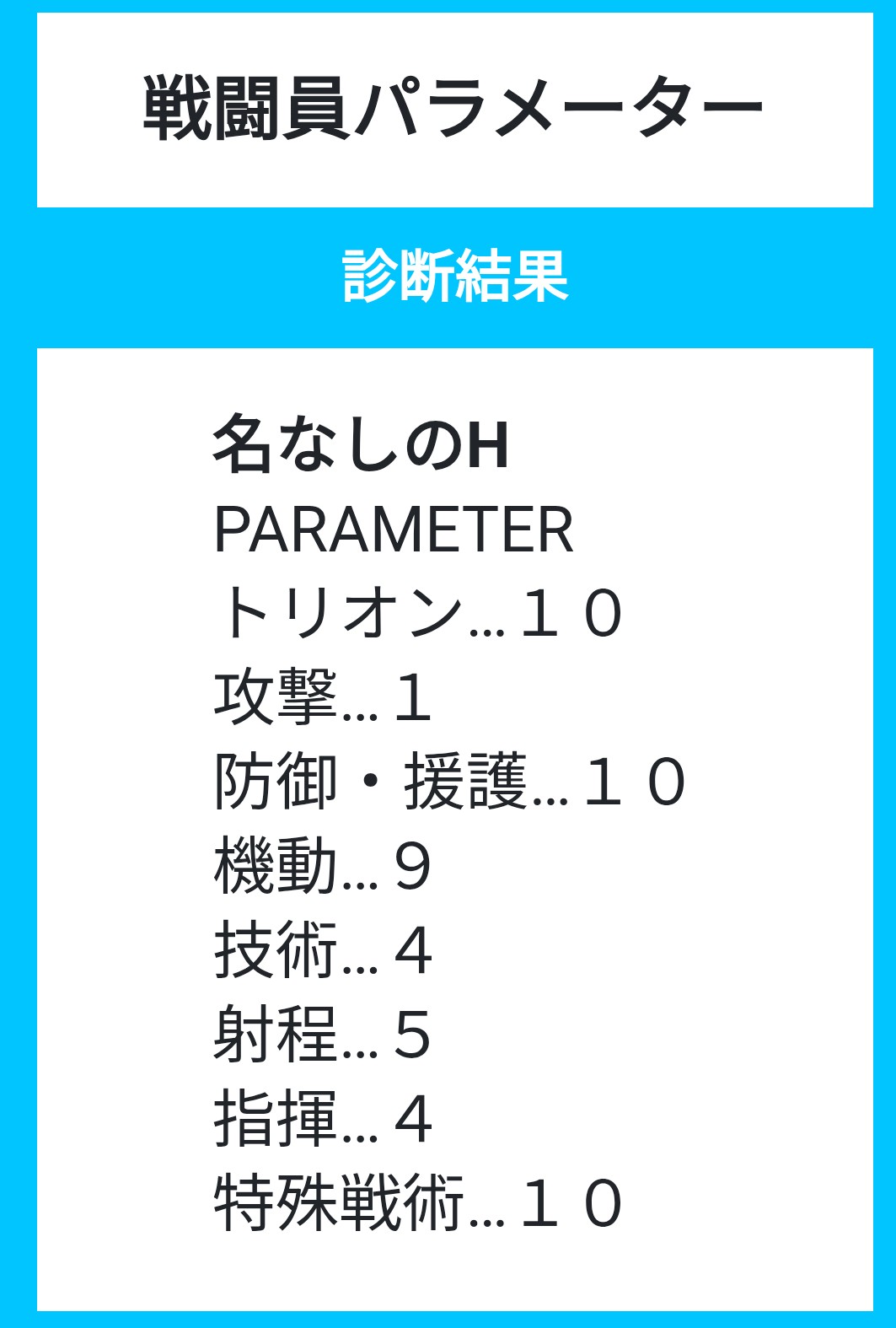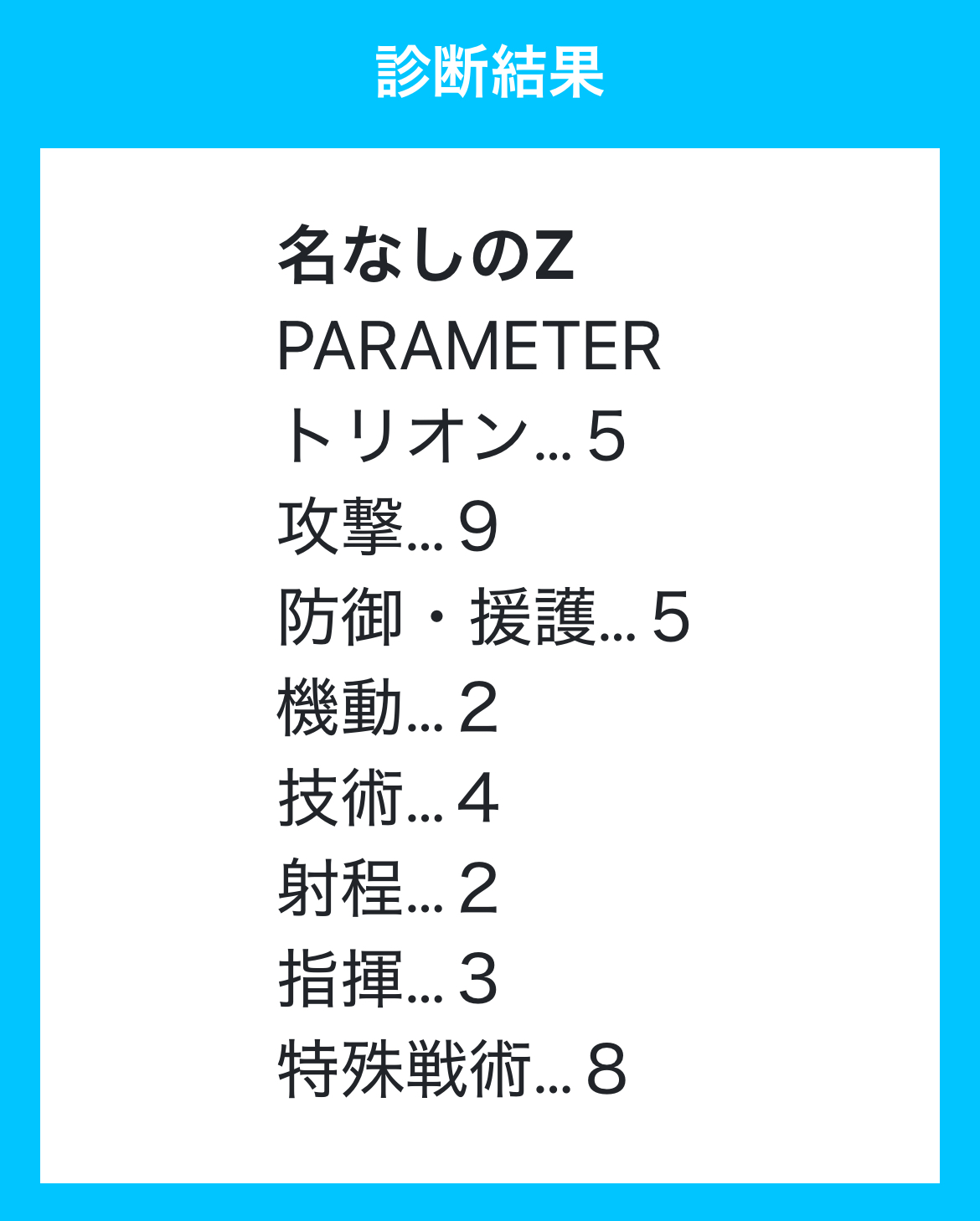 ト6 攻9 防7 機7 技8 射3 指9 特6 合計55
