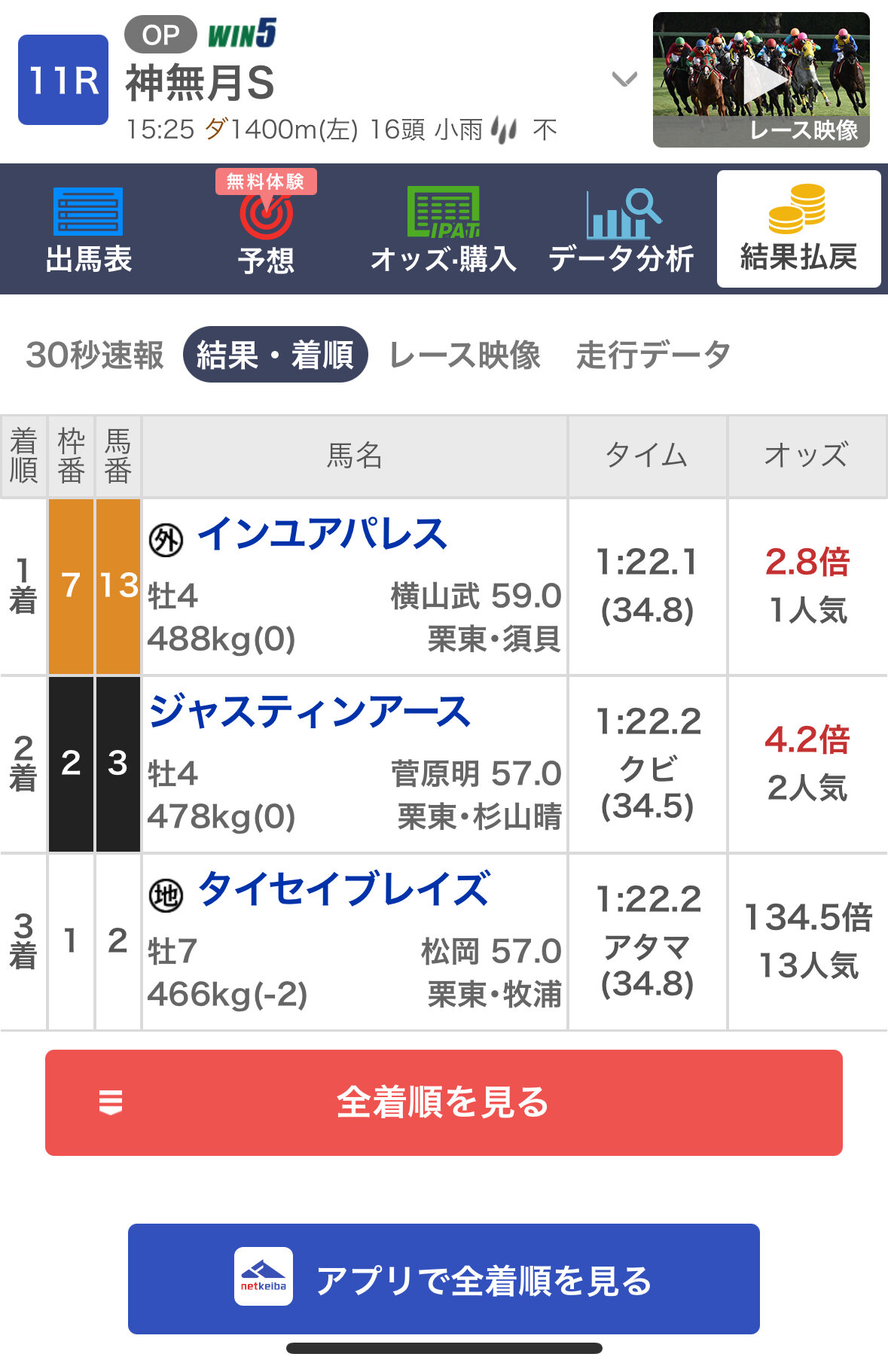 本命で大勝利や