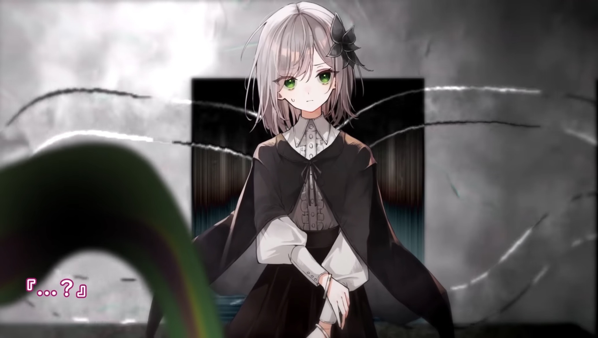 『冰鞠(クトゥルフ神話TRPG『無垢の神』)《性別:女 一人称:私 性格:純真無垢な性格で精神的に脆い。 特徴:白銀の髪に翠緑の瞳を持っている。不可視の触手を5本ほど自由に操れるが、精神へのダメージでたまに暴走する》』