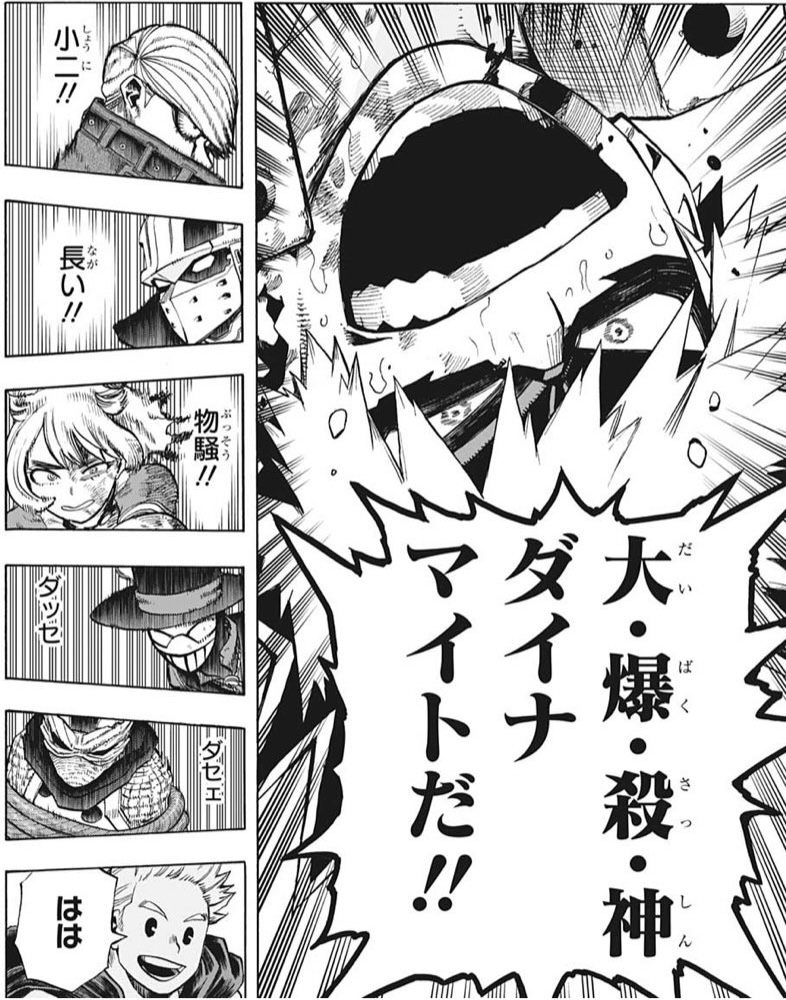 たぶん元のヒーローネームの「ダイナマイト」に当たる部分に固有名詞入れようとしたら秒数の差でジーニストのセリフになったんじゃない?