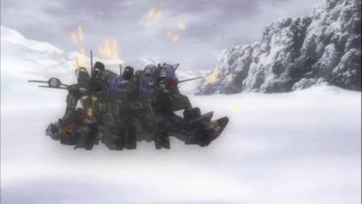 元旦那「…地形が少し変わって前方の大岩…先頭の白は無限軌道から四脚に切り替えて躱し…後続も同じように…ん!?」