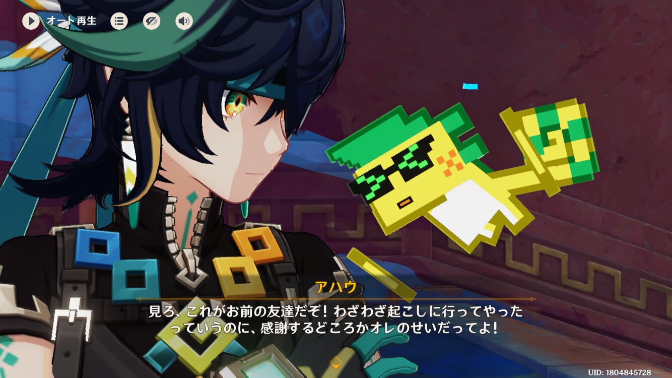私は最近復帰した旅人|あにまん掲示板スメール編に入った今、良い機会かなと思ったので実況スレを立ててみました。こう言うのは初めてですが、暖かい目でも、冷凍庫の中かってぐらい冷たい目でも構わないので見守って頂けると嬉しいです。かなりマイペー…bbs.animanch.com初めてましての方は初めまして。前回から見ている人はこんにちは。藍硯最推しの復帰勢です。こちらのスレでは、テイワットで引き起こされる様々な出来事を、実況しながら見て行きたいと思っています。