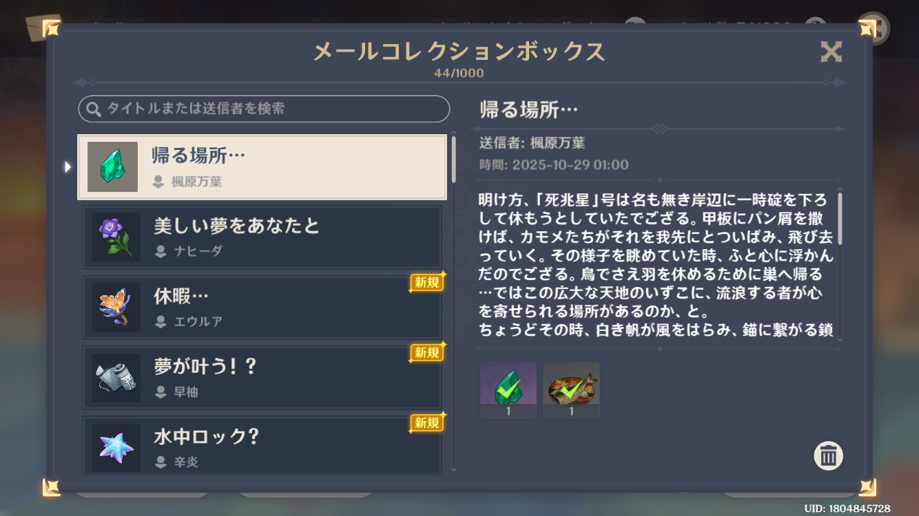 去年の10月ぐらいから始めて、前回のフリーナ復刻ガチャ終了時に一度テイワットを離れました。