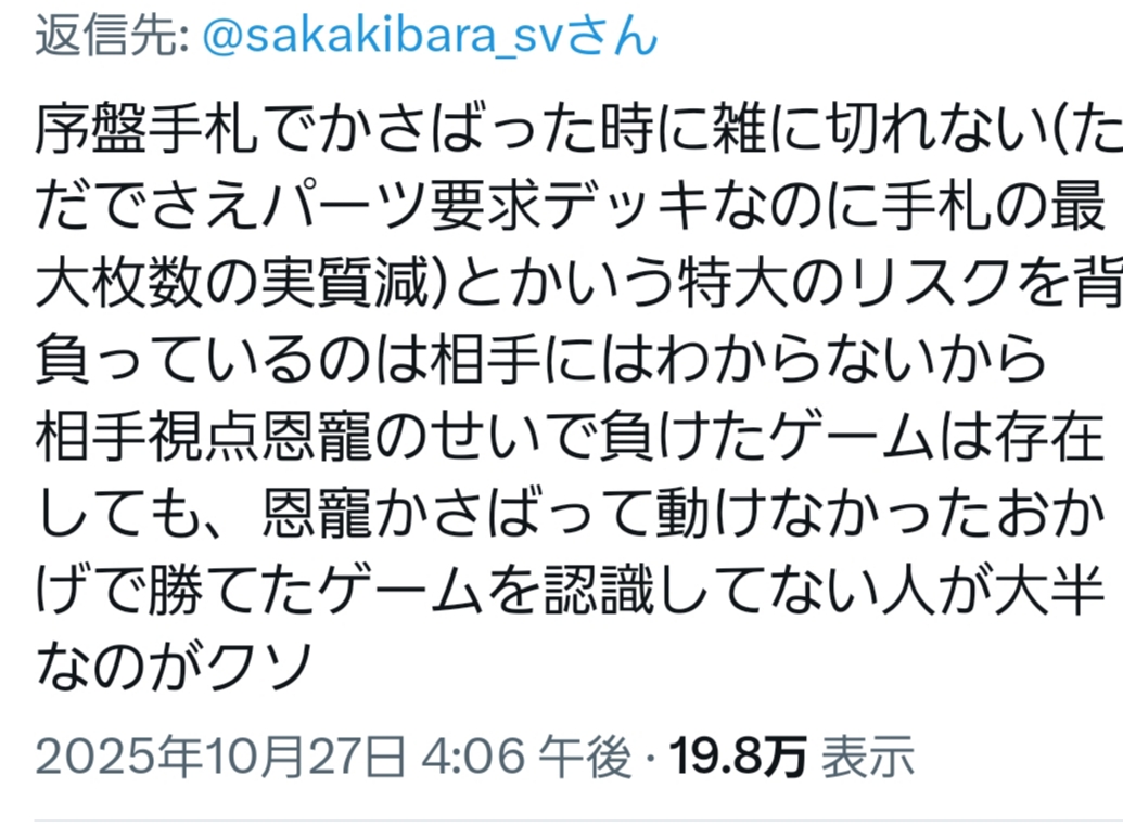 恩寵ナーフに否の意見出してる自称シャドバ有識者様達はこの辺のこと全然言ってる人がいない - 17二次元好きの匿名さん25/10/28(火) 09:20:21