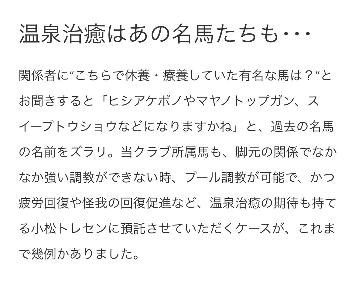 スイープは実馬が現小松トレセンがある温泉牧場で休養を取った事あったけどその縁かね